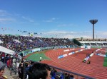 The Tokushima Vortis is the local Japanese professional soccer team representing the prefecture of Tokushima, Japan. The team is owned by the Otsuka Pharmaceutical company and primarily sponsored by Ostuka’s popular sports drink brand, Pocari Sweat. The team name Vortis is comprised from the Italian word, ‘vortices,’ which means ‘whirlpools’ – a symbol of tourist attraction visible in the Naruto Straits within the prefecture. Although the history of the team can be dated back to 1955 as the Ostuka Pharmaceutical Co. Ltd. Soccer Club, it wasn’t until 2005 Tokushima Vortis was officially adopted as its team name entering into its first year in Japan’s second-tier professional league (J-2). The Japanese professional soccer league, known as the J-League is comprised of two divisions, J-1 and J-2, with 18 and 22 teams included respectively. Each year in the league, the top three teams in J-2 replace the 3 worst teams in J-1 as a promotion for a successful season, a crowning achievement Tokushima Vortis celebrated for the first time last year in 2013. However, this promotion to the big boys’ league has come with big boy lumps as Tokushima finds itself without a win and in last place in J-1 League standings to date. Today I went to see last place Tokushima Vortis in action vs. 4th place Kawasaki Frontale, a team based south of Tokyo in Kanagawa prefecture. With over 8000 people in attendance, Tokushima Vortis was dominated 4-0. Despite the loss and the winless season to date, Tokushima supporters showed a lot of pride and dedication by cheering until the very end. A look around the stadium, I couldn’t see even one person making a break to beat the traffic, all of whom stayed until the customary team visit to acknowledge the fan support. The final cheers seemed rather supportive and encouraging for players having to dreadfully confront their fans after a butt-kicking loss, except for one bit of raw emotion I witnessed as an angry kid, screamed “booooooooo!” with thumbs down! Despite this 0-6 start, the J-League season has just started and will last well into December, so only time will tell if Tokushima Vortis belongs with the big boys..