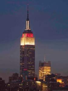 New York’s tallest landmark was lit in the colors of the Japanese flag in a show of support for Japan following the deadly March 11th earthquake and tsunami. The illumination was part of a global lightshow of support and awareness-raising for quake and tsunami relief held at landmarks in the United States, Canada, China, Malaysia, South Korea and New Zealand. The expression of international support was led by New York City’s Empire State Building, whose upper decks lit up with Japan’s national flag colors at sunset.